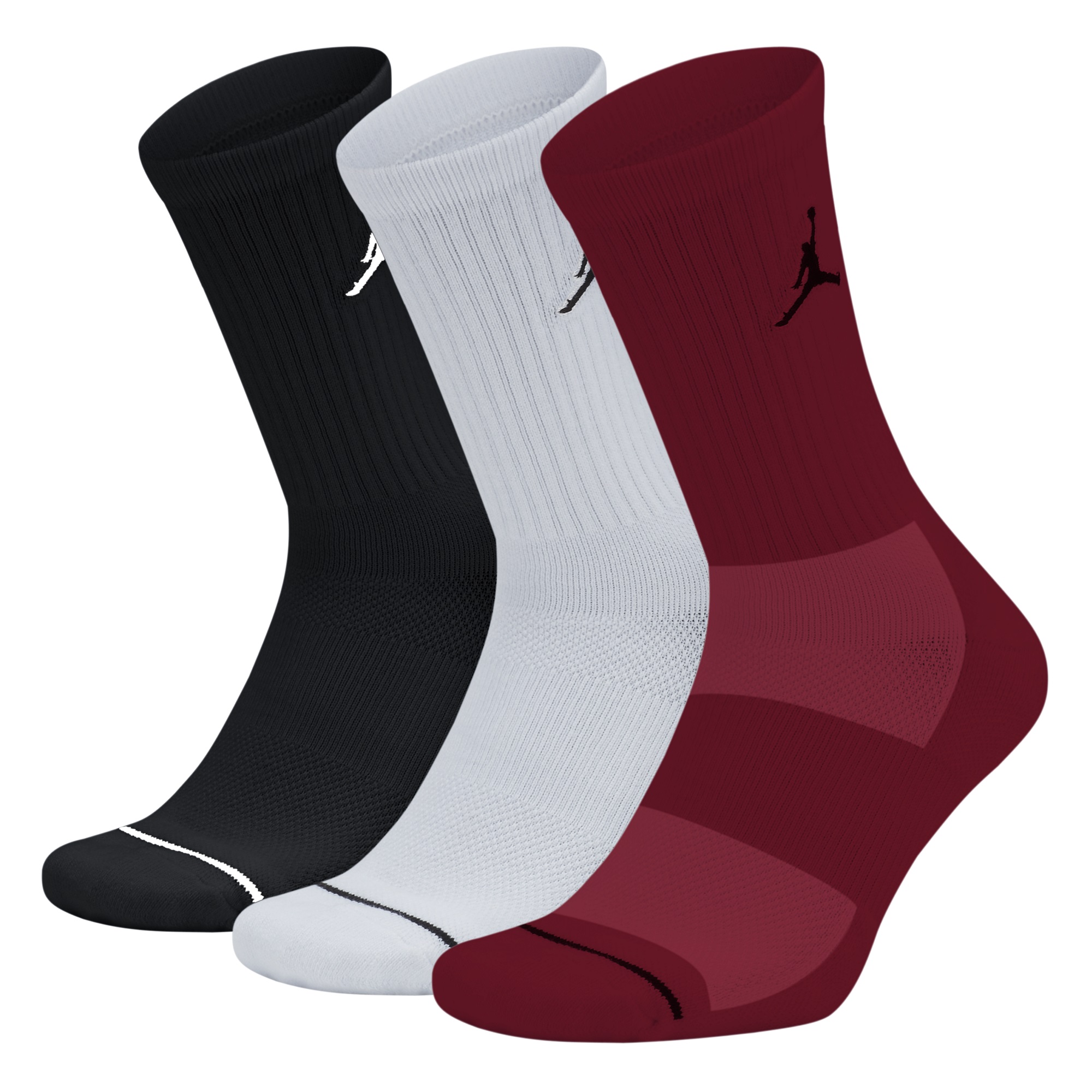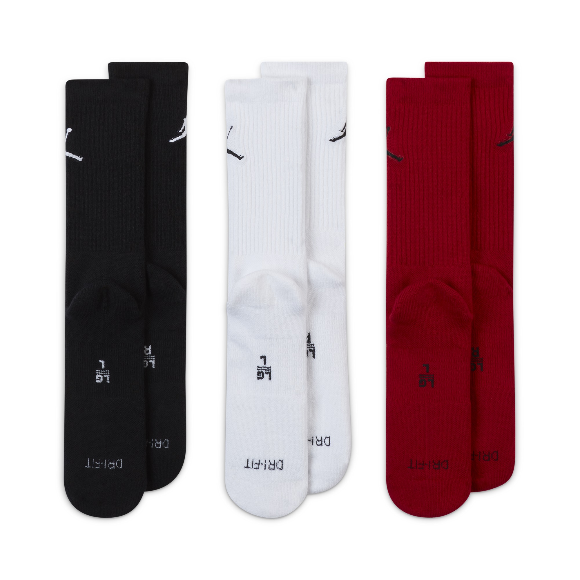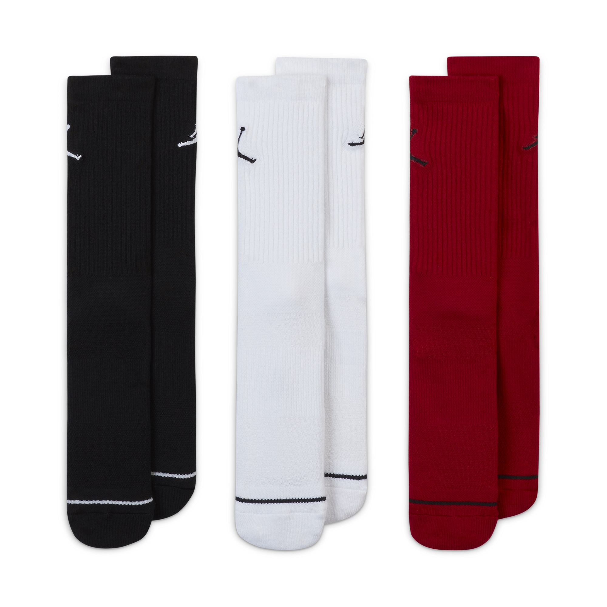AIR JORDAN JUMPMAN DRI-FIT EVERYDAY MAX CREW SOCKS 3 PACK ''BLACK WHITE GYM RED''