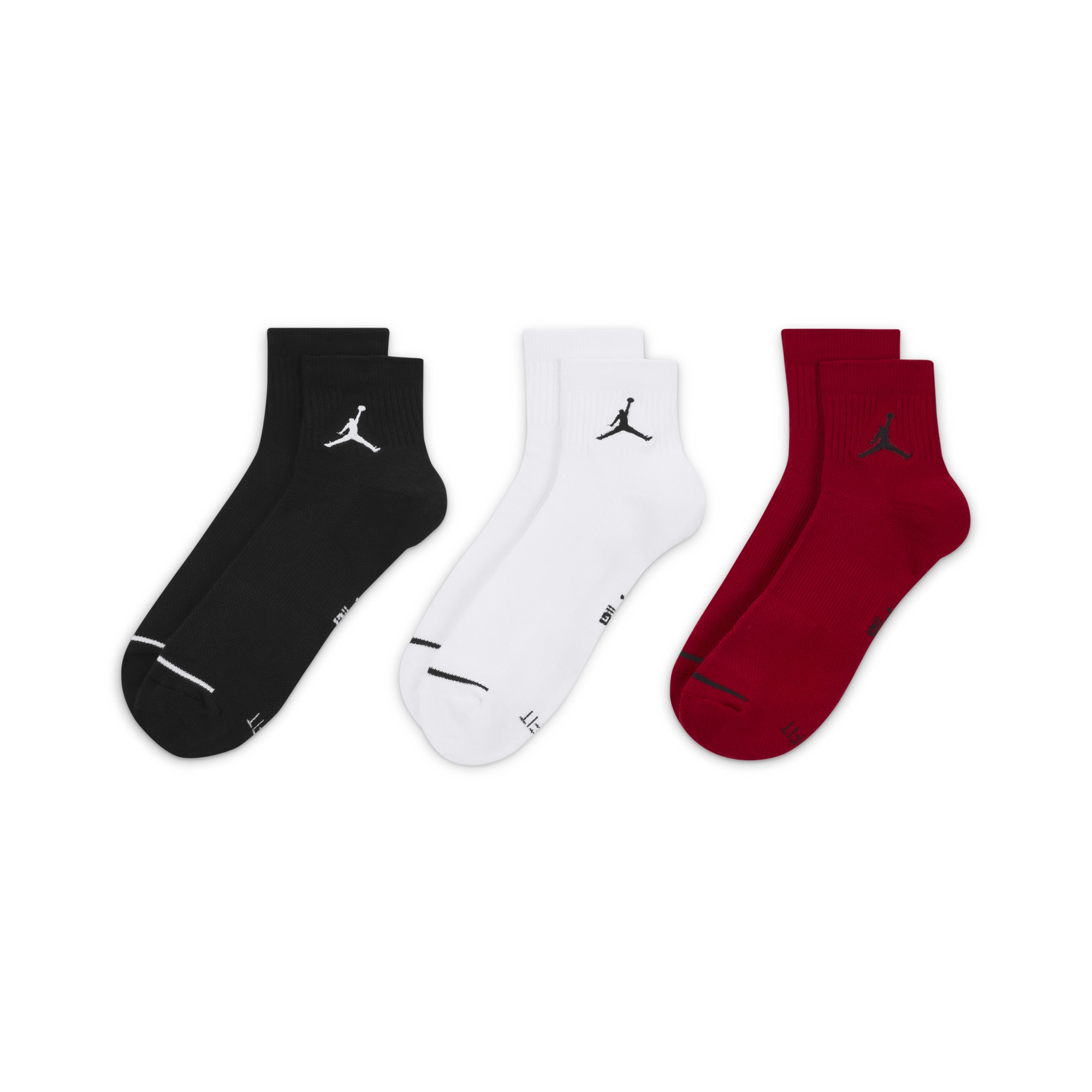AIR JORDAN JUMPMAN DRI-FIT EVERYDAY MAX QUARTER SOCKS 3 PACK ''BLACK WHITE GYM RED''